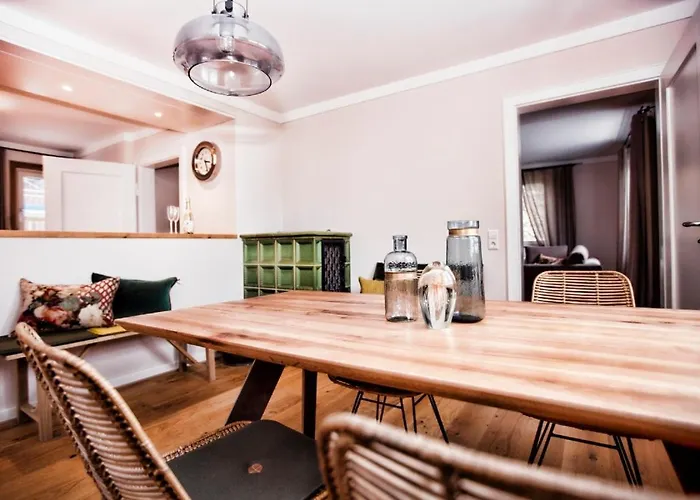 The traditional 110 m^2 Ferienhaus Hotel Hirschen Horn is situated in Gaienhofen, 10 minutes' drive from Strandbad Mettnau Public Beach, and offers spa amenities such as sauna facilities. The 0-bedroom apartment is a 10-minute ride from Reichenau Island and not too far from St. Johann Church.